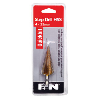 P/N: SUT149040250QUICKBIT STEP DRILL 11 STEP 4 – 25mm HSS TiN x 1/4″ Shank