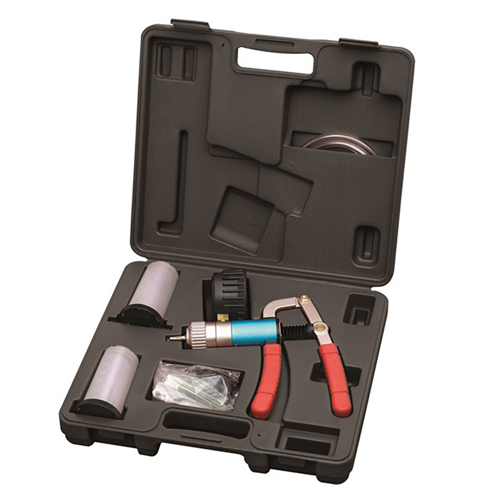 Engineered for versatility, the pump features a switchable valve that allows users to instantly toggle between vacuum and pressure modes. It covers a substantial operating range from -30 psi up to 60 psi (-1 to 4 bar), making it suitable for a wide variety of passenger vehicles, light commercials, and trucks. The kit comes complete with a reservoir bottle, an assortment of hoses, and various adaptors to suit different vehicle fittings. Everything is housed in a heavy-duty storage case, keeping the components organised and protected in the workshop. Whether you are performing reverse brake bleeding or diagnosing a vacuum leak, this kit delivers professional reliability.