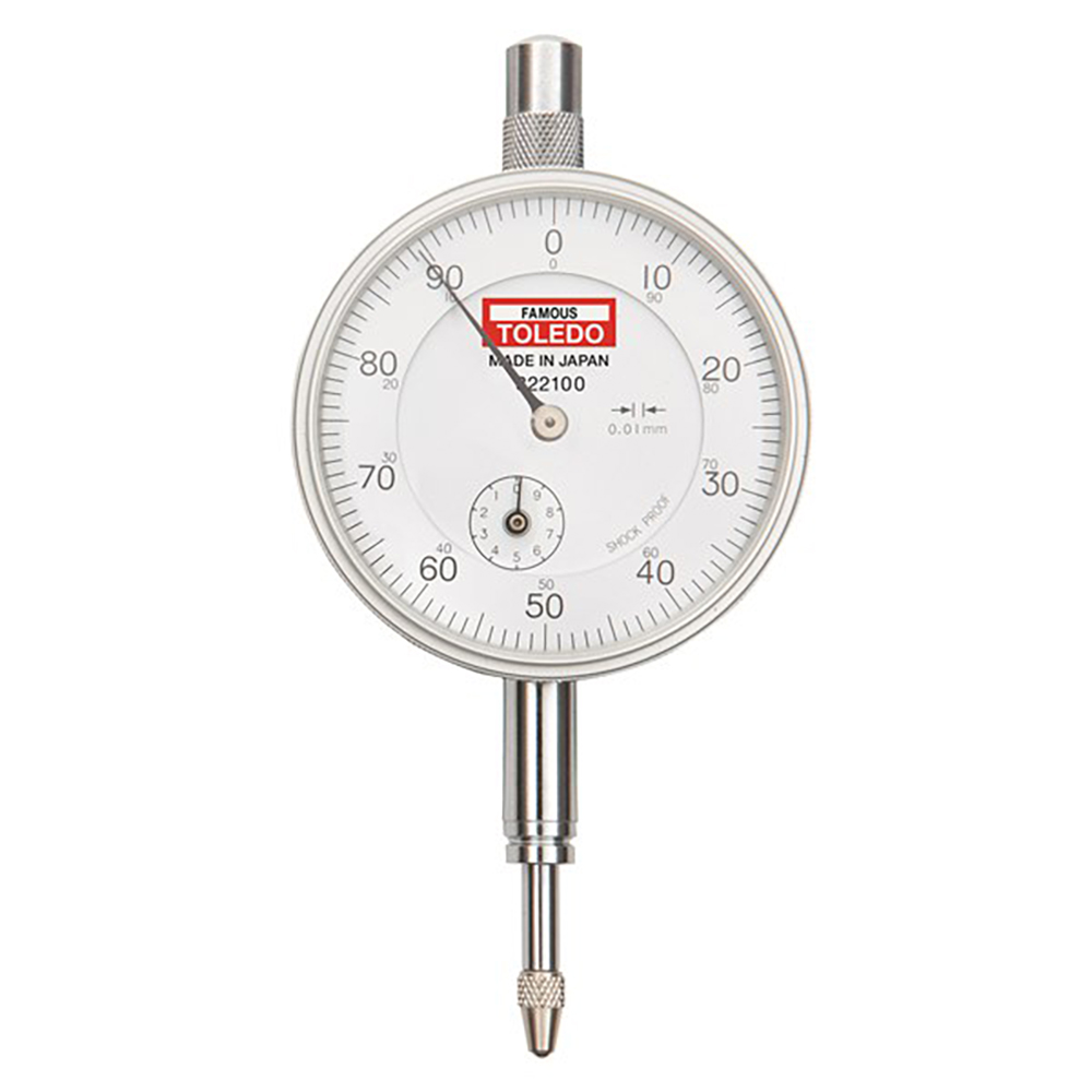 The Toledo Metric Analogue Dial Gauge is a high-precision instrument engineered for expert measuring tasks where accuracy and reliability are non-negotiable. Manufactured in Japan to strict JIS B 7503 standards, this gauge features a robust design capable of withstanding demanding workshop environments. The internal housing is sealed with an O-ring, making the unit waterproof and dustproof, while a specialised shock-proof mechanism protects the delicate internal gears from damage should the spindle be pushed abruptly.