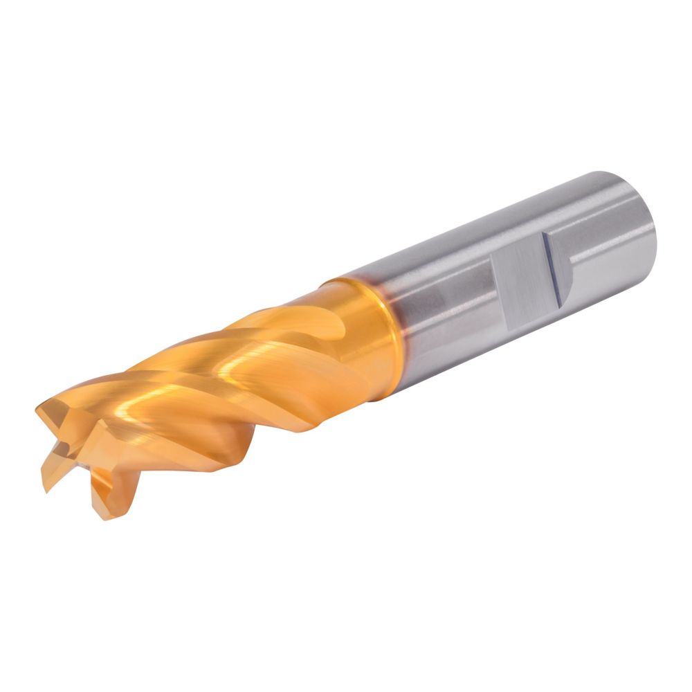 - Asymmetric divided flute and variable helix angle for better vibration control and tool life.