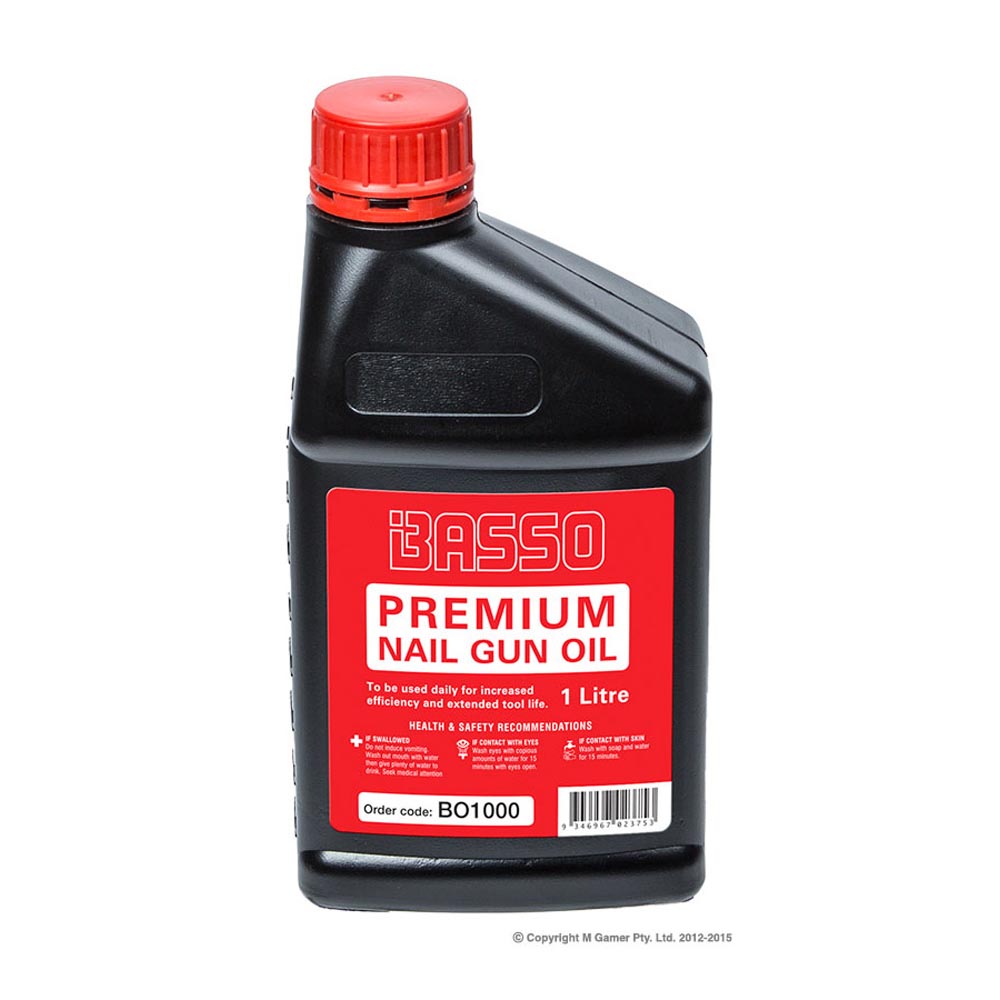 Basso Premium Nail Gun Oil is formulated to prolong the performance of your Basso nail gun in both warm and cold climates. Adding only a couple of drops daily to the air inlet will greatly reduce internal wear and maintain the integrity of the gaskets and seals.