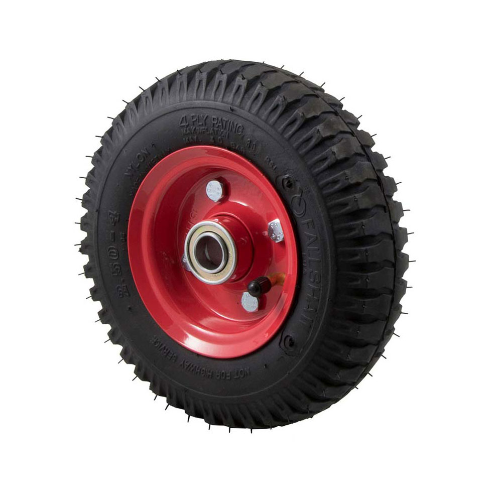 Supplied with tubes for high performance and improved weight carrying capacity. These wheels can be retrofitted with tubes if original tyres are punctured*. Steel centred wheels provide higher load capacity and reliable long life performance. Sizes up to and including the 500×6 are manufactured from 1.8 mm steel, and the 650×8 is of 2 mm thick steel.