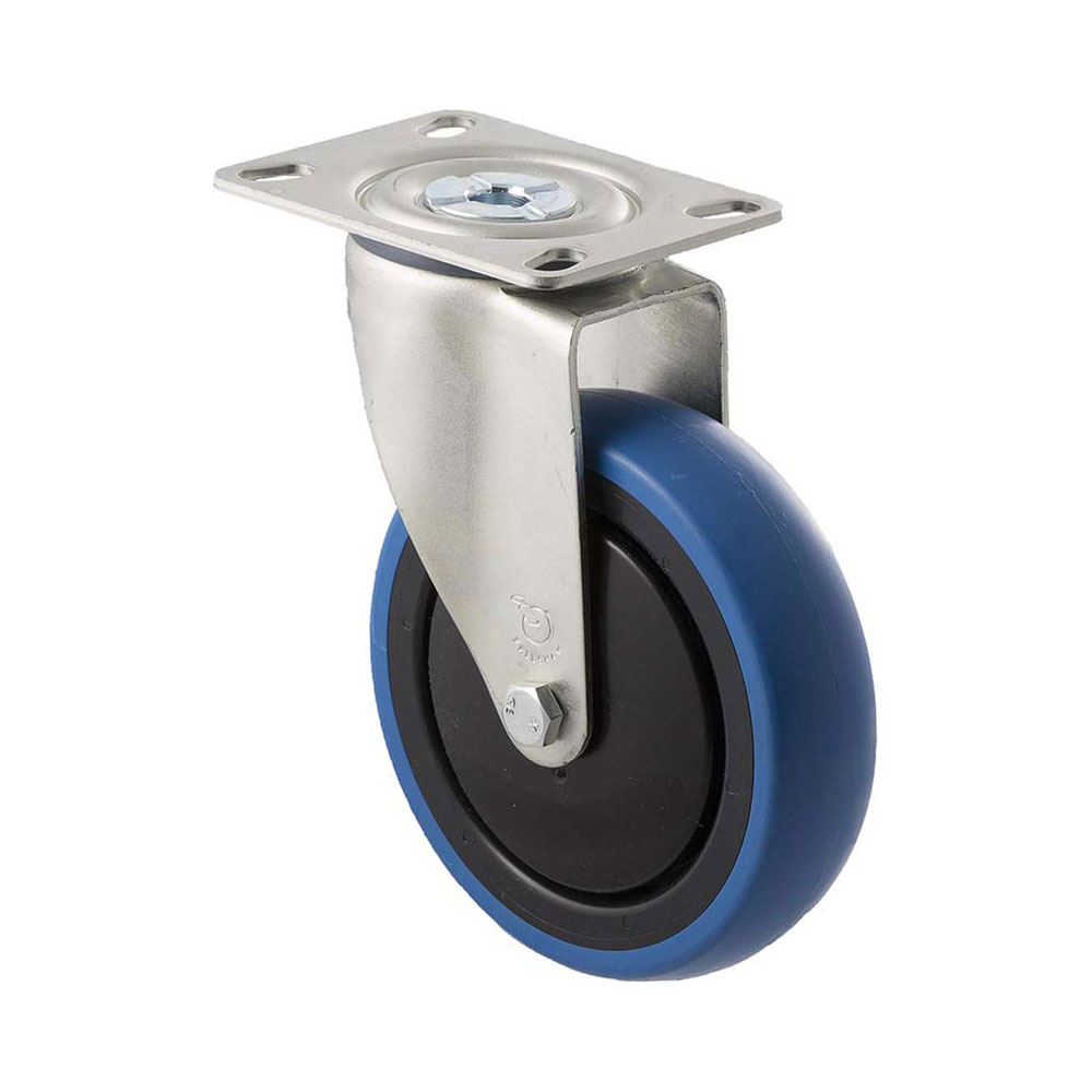 125mm C125 Blue High Resilience Elastomer Ball Bearing Swivel Plate 100kg Castors