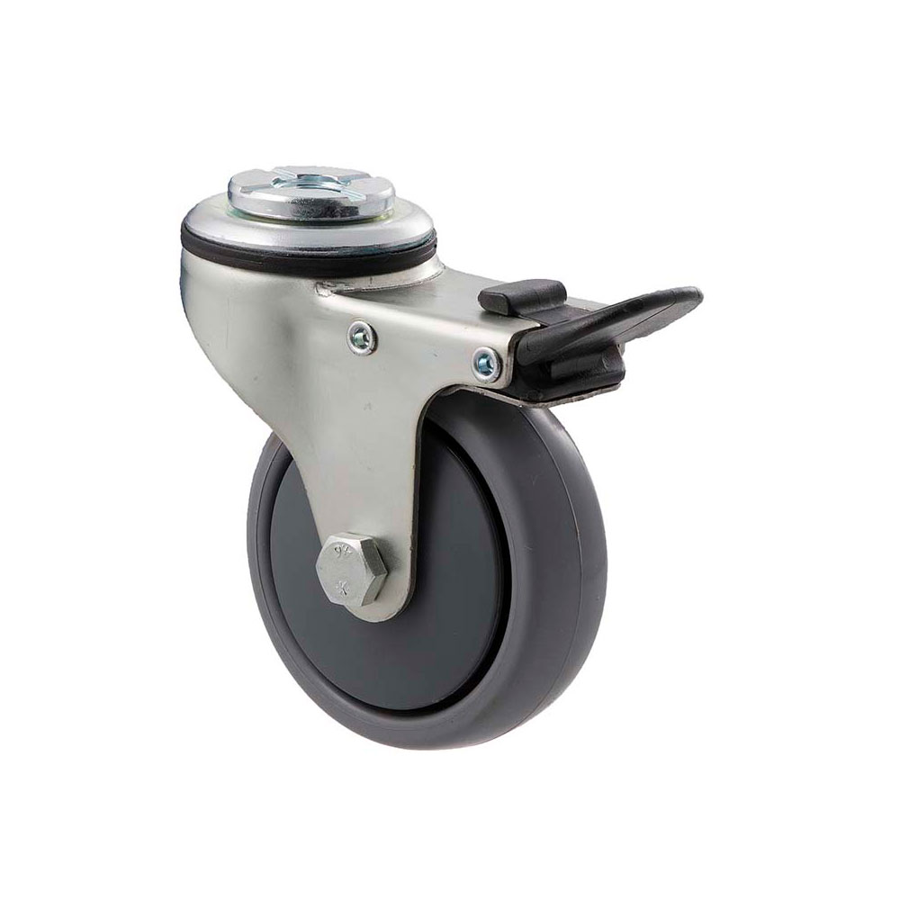 75mm K75 Thermoplastic Elastomer Plain Bearing Bolt Hole And Total Brake 50kg Castors