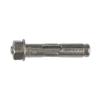 Quality, medium duty torque controlled deformation type sleeve anchor, for general use in concrete, solid masonry and stone.