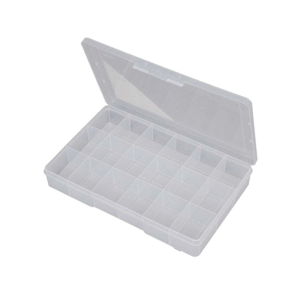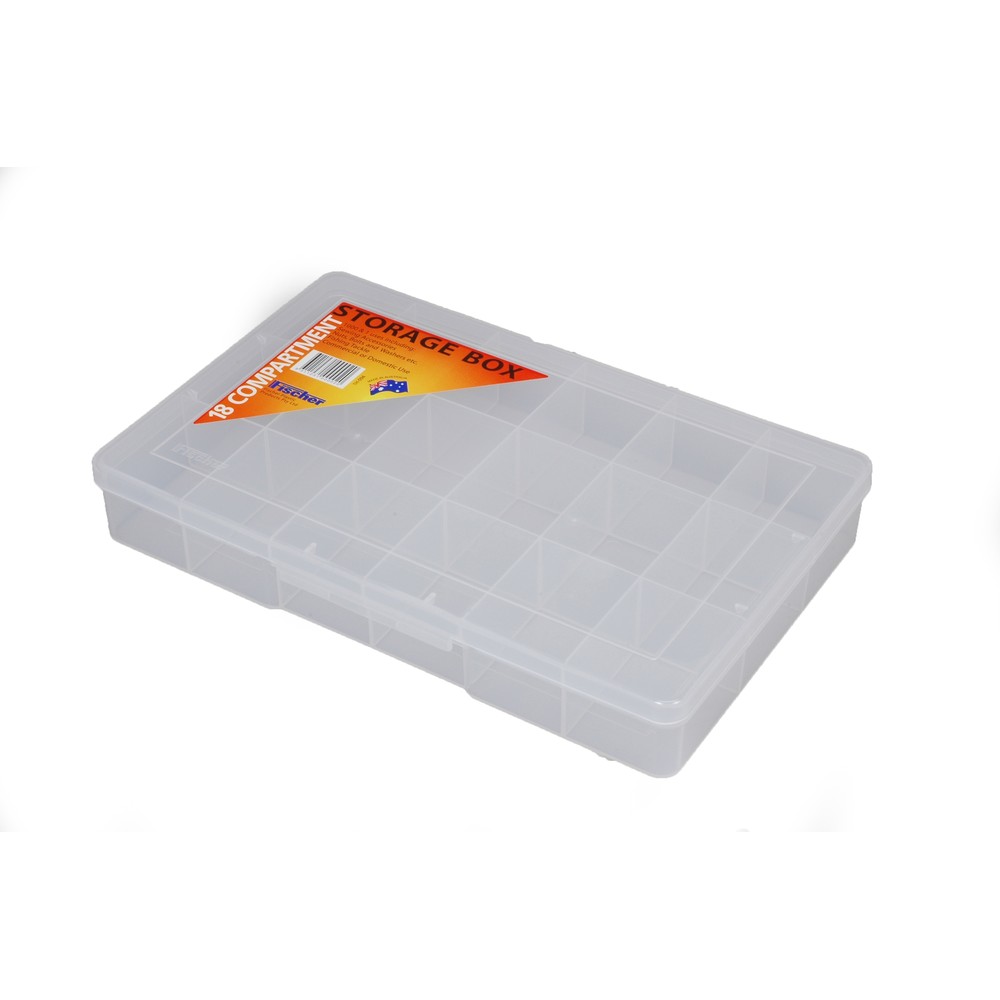 Featuring a robust design and 18 individual compartments, this storage box ensures your items are securely separated and easily accessible. Its compact dimensions (W310xD200xH48mm) make it ideal for transport between job sites or for neat storage within workshops and garages. Crafted from high-quality materials, the Fischer Plastics storage box is built to withstand the rigours of daily use, providing a reliable and long-lasting organisational tool for all your industrial and personal needs.