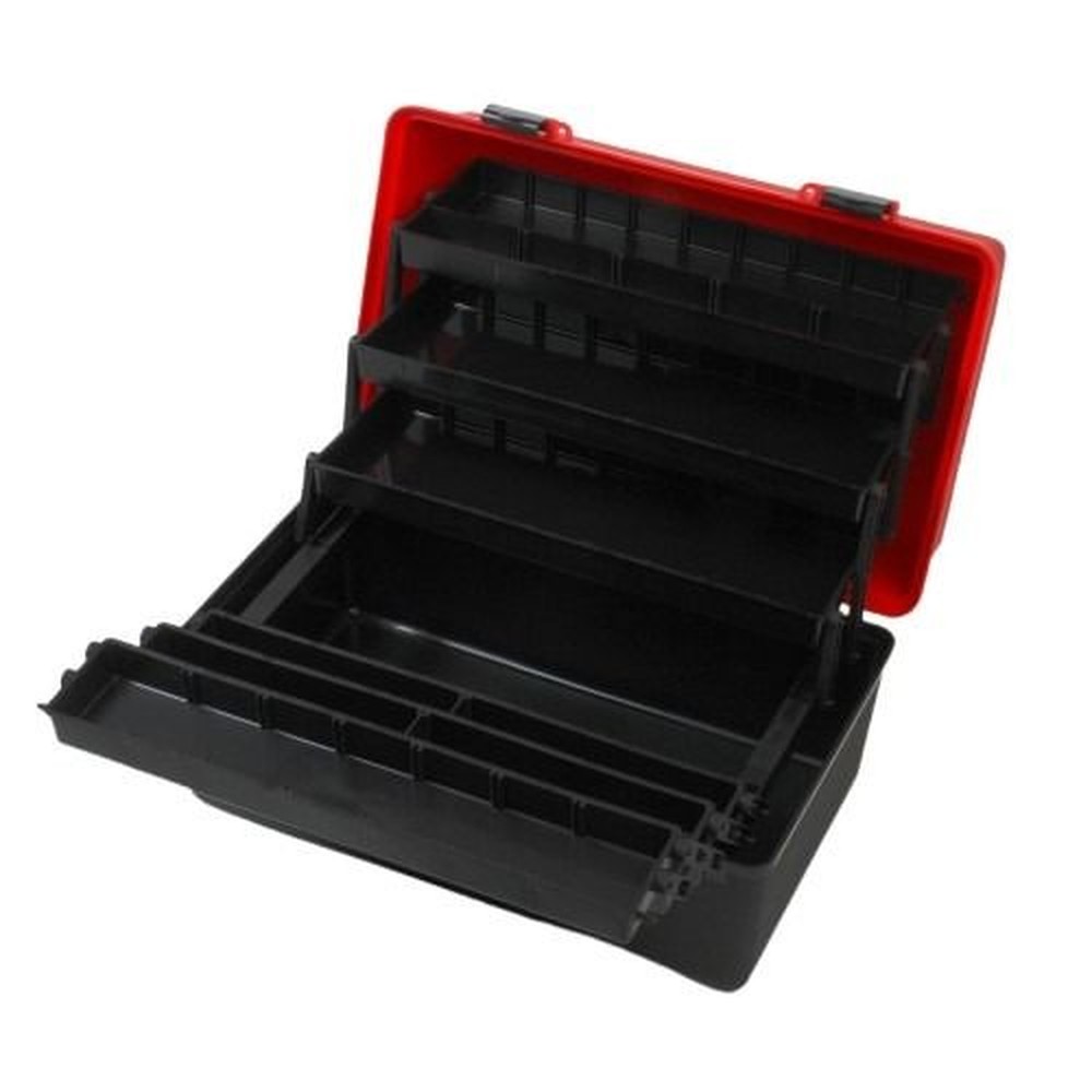 Crafted with quality Australian manufacturing, this tool box provides ample storage across multiple compartments, allowing for meticulous organisation of various fasteners, hand tools, and smaller components. The striking black and red colour scheme not only looks professional but also makes it easy to spot. Whether you’re a tradie on the go or a keen hobbyist, this Fischer Plastics tool box offers reliable performance and superior organisation, ensuring your gear is always secure and within reach.