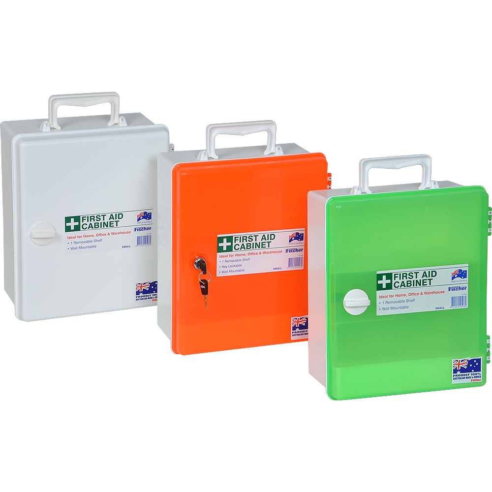 Ensure your essential first aid supplies are always secure and easily accessible with the Fischer Plastics Small First Aid Cabinet. This robust, lockable cabinet is specifically designed to safely store critical medical items, providing peace of mind in any environment. The vibrant orange door ensures high visibility, allowing for quick identification during emergencies, a crucial feature for any workplace or home setting across Australia.