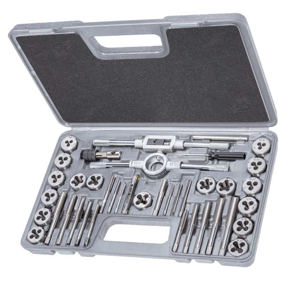 Imperial tap & die sizes: #4-40, #6-32, #8-32, 1/8″-27, 1/4″-20, 5/16″-18, 3/8″-16, 7/16″-14, 1/2″-13