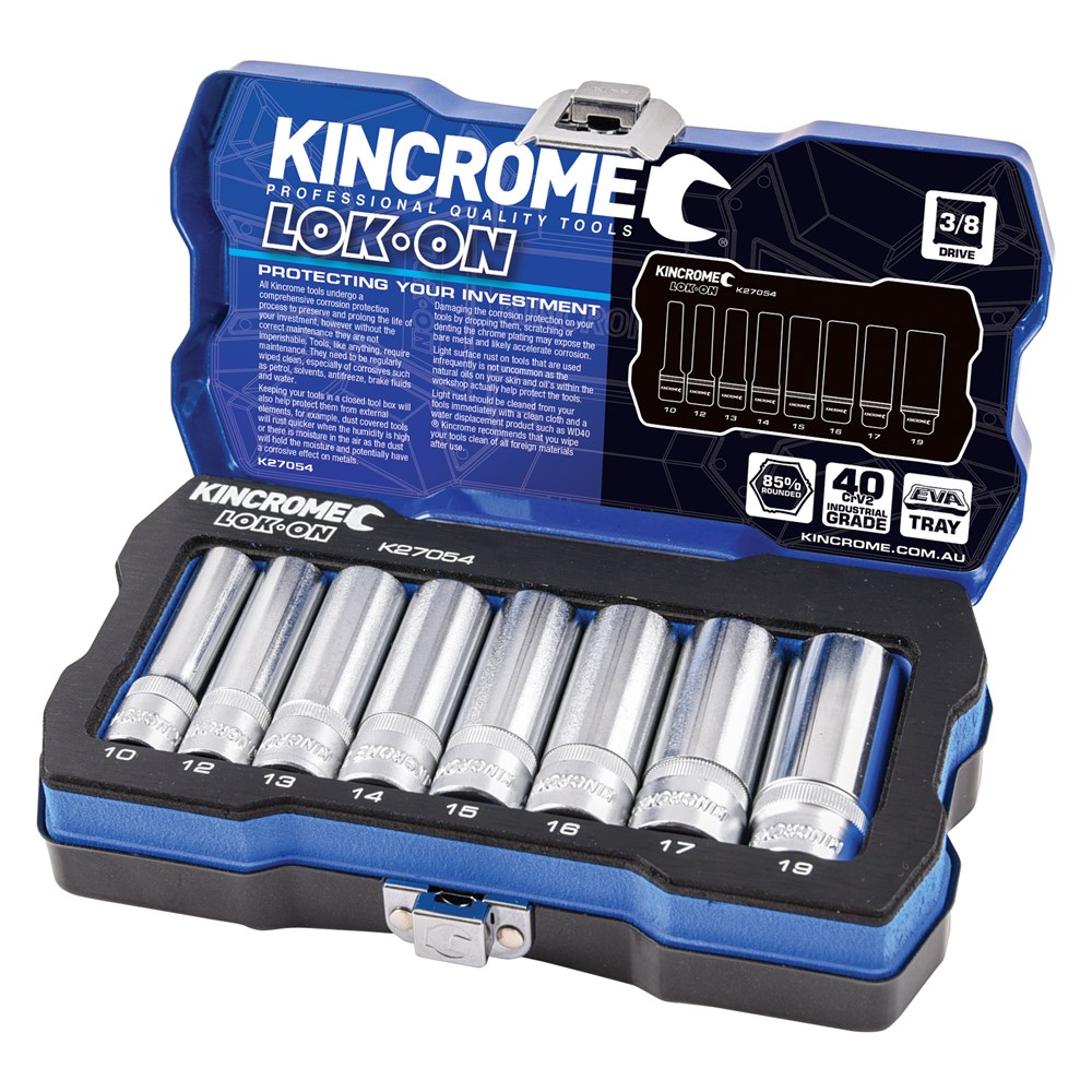 Kincrome LOK-ON™ Socket Set 8 Piece 3/8″ Drive – Metric