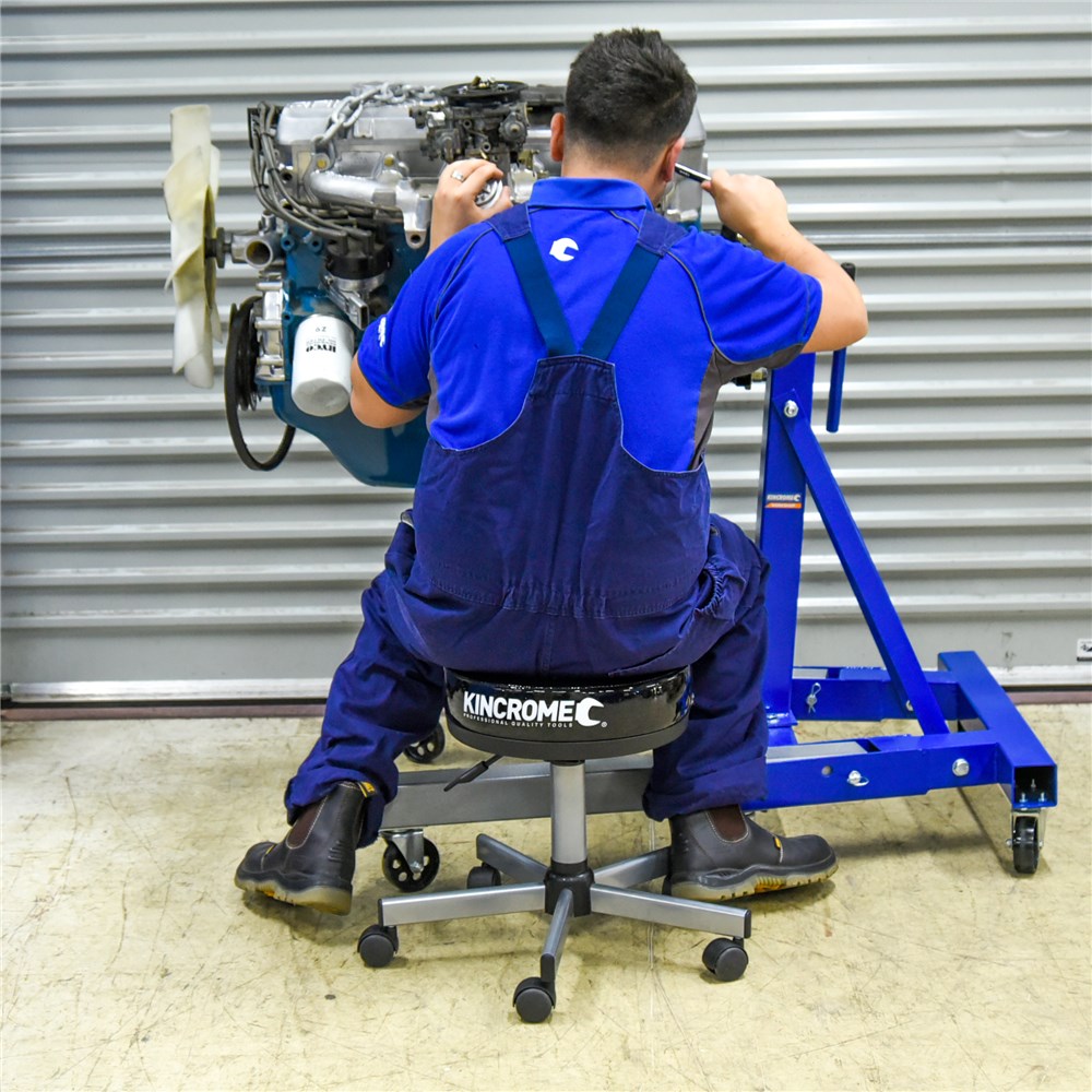Featuring a full 360° swivel mechanism, the Gas Lift Workshop Stool features a pneumatic seat height adjustment of 140mm allowing you to work ergonomically at your desired work height! The durable powder coated steel 5 leg base provides superior stability, coupled with the 600kg rated, ANSI certified smooth rolling castors, make rolling around on smooth and uneven workshop floors a breeze.