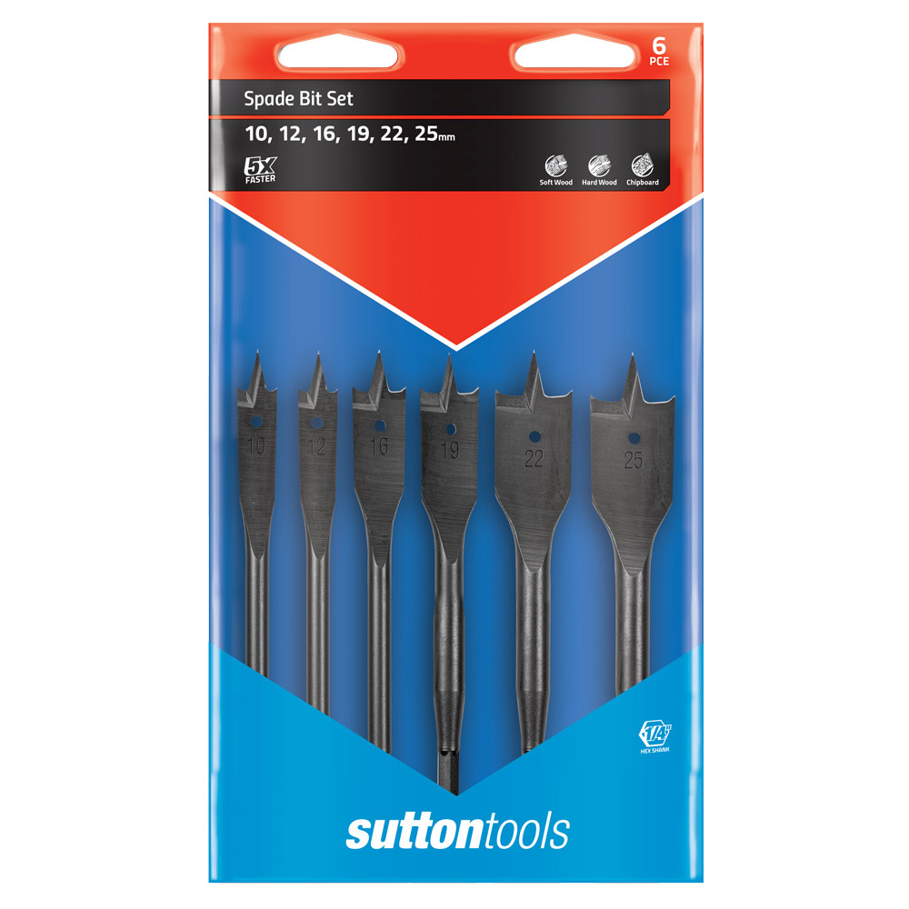 5 times faster than standard spade bits. The Sutton Tools spade bit incorporates the latest design technologies for the most powerful and fastest cutting bit on the market. Combining a power chip-breaker and heavy duty shank to increase efficiency and battery life of your power tool, with clean cutting and minimal break out on exit. Designed for drilling in timber and light building materials.