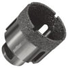 Sutton Tools Diamond core bits fit all M14 angle grinders and are suitable for superior dry cutting of tile, fibre glass, ceramics, porcelain, marble, granite and brick up to 35mm thick. The diamond coated tooth design and cut-out slots help to reduce the temperature while cutting, and therefore extends the life of the blade which allows it to make more holes before replacement.