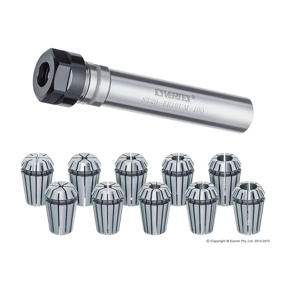 Vertex ER16 20 x 100mm Chuck complete with 10 Collets